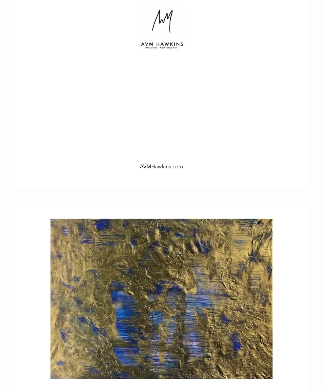 AVM Hawkins (b. 1985, New Orleans) is an American contemporary fine artist of Creole descent, based in Houston, Texas. An abstract expressionist, she intuitively uses color, contrast, and movement to evoke emotion while incorporating mixed materials, layered paint, and spontaneous verbiage to draw the viewer deeper into her work. AVM seamlessly blends freehand patterns with fluid, gestural improvisations, bridging the worlds of form and abstraction to create space for exploration and fortuity.