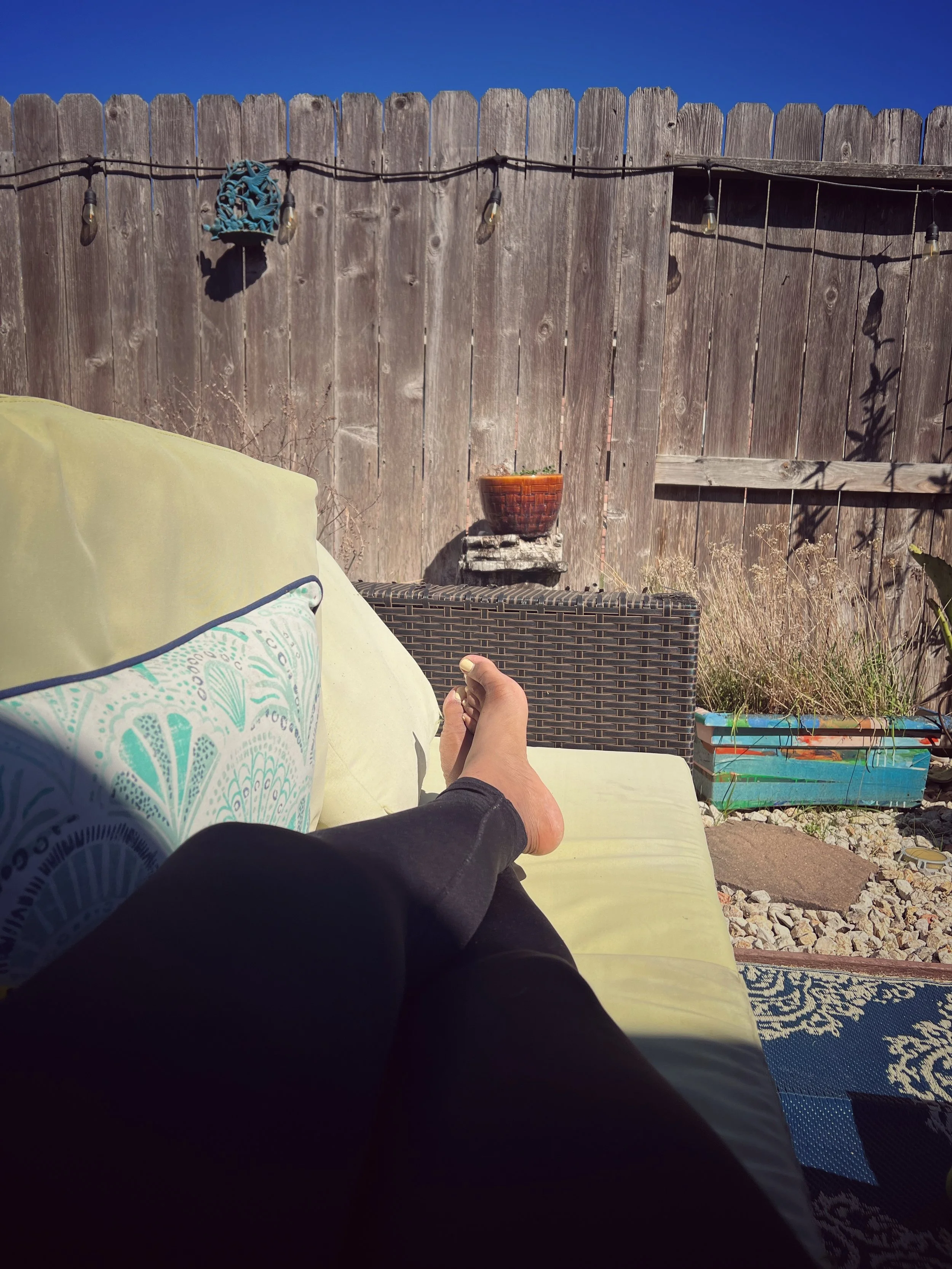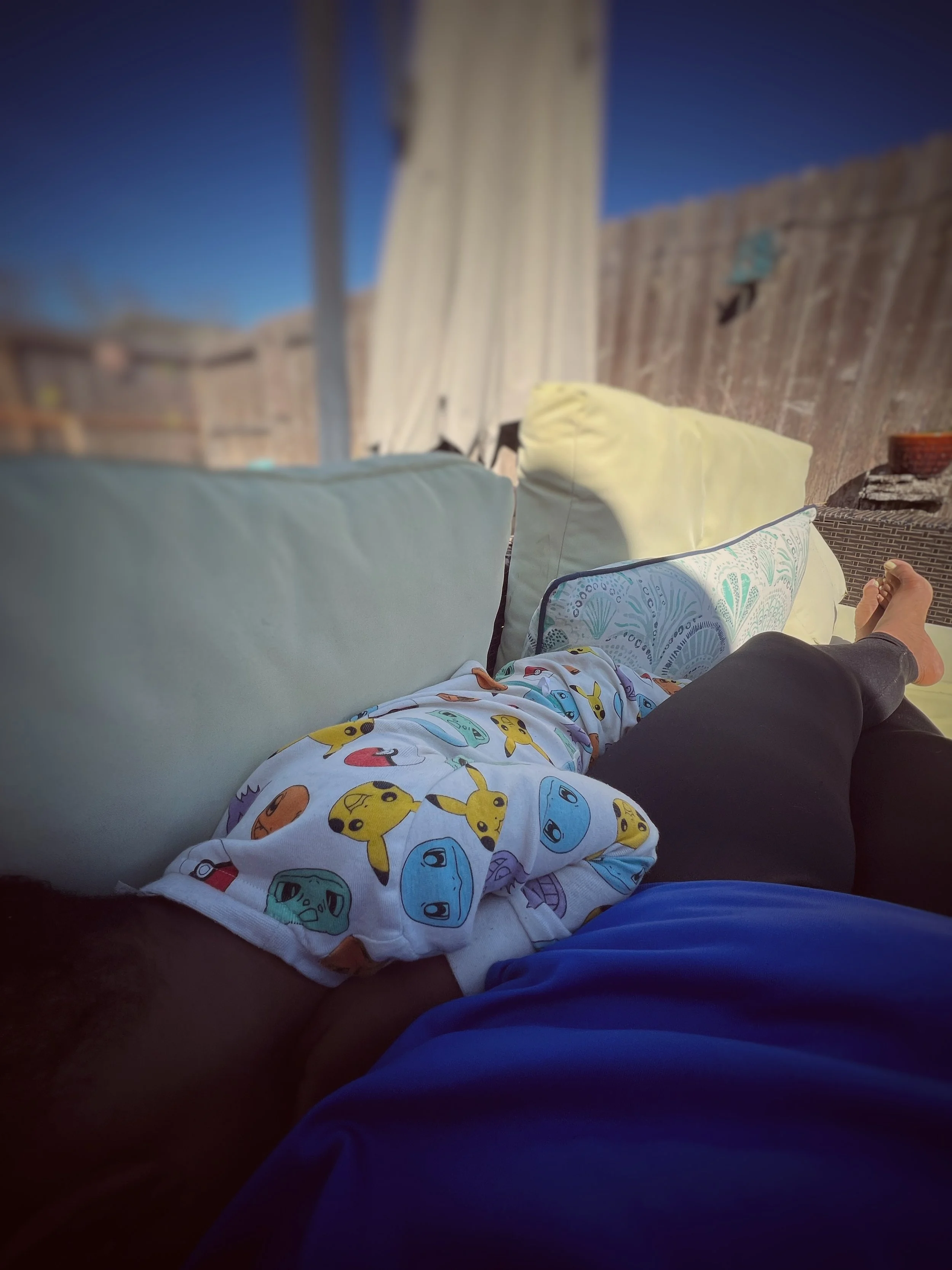 Still sleepy, I carried him outside to lay down on our garden sofa to help him slowly wake up to the crisp cool sunny day.
